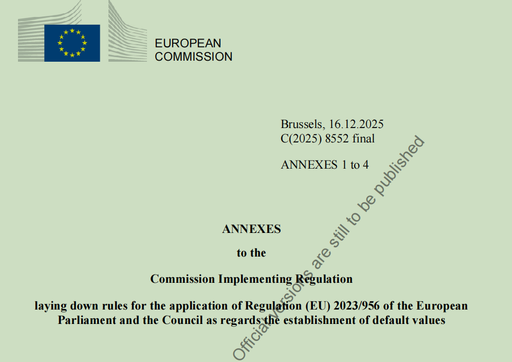 官方定义:由欧盟委员会制定的、代表某一CBAM商品在特定国家/地区、采用特定生产路线下的平均或保守碳排放强度值。