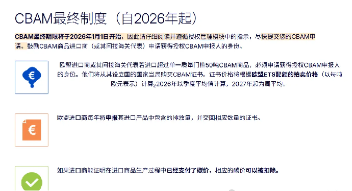 官方定义:进口商在CBAM正式实施阶段(2026年起)需要为其进口商品的隐含碳排放购买并上交的电子凭证。